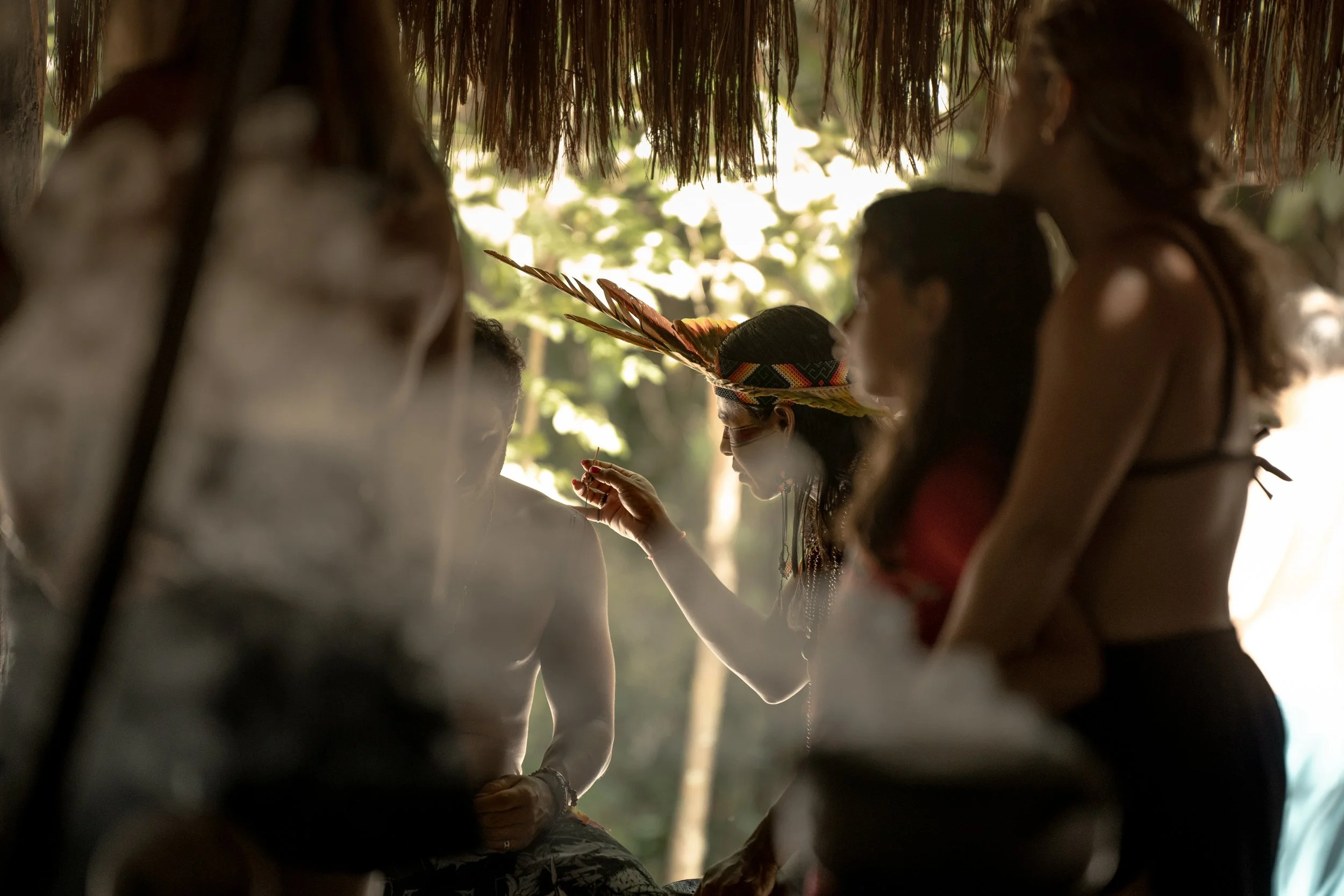 Before the ceremonial inhalation of the culturally "sacred powder", participants — including visitors — are painted with spiritual patterns using liquidized charcoal. This symbolic act fosters a profound connection among all involved.